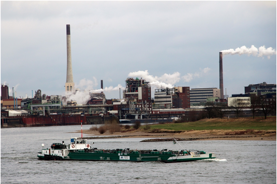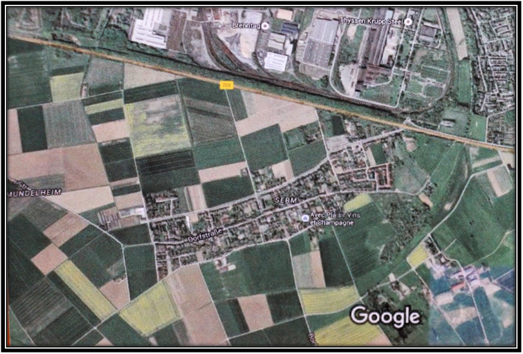 En haut de la photo l’usine Thyssen Krupp , de l’autre coté de la route le village de Serm qui va jusqu’au Rhin